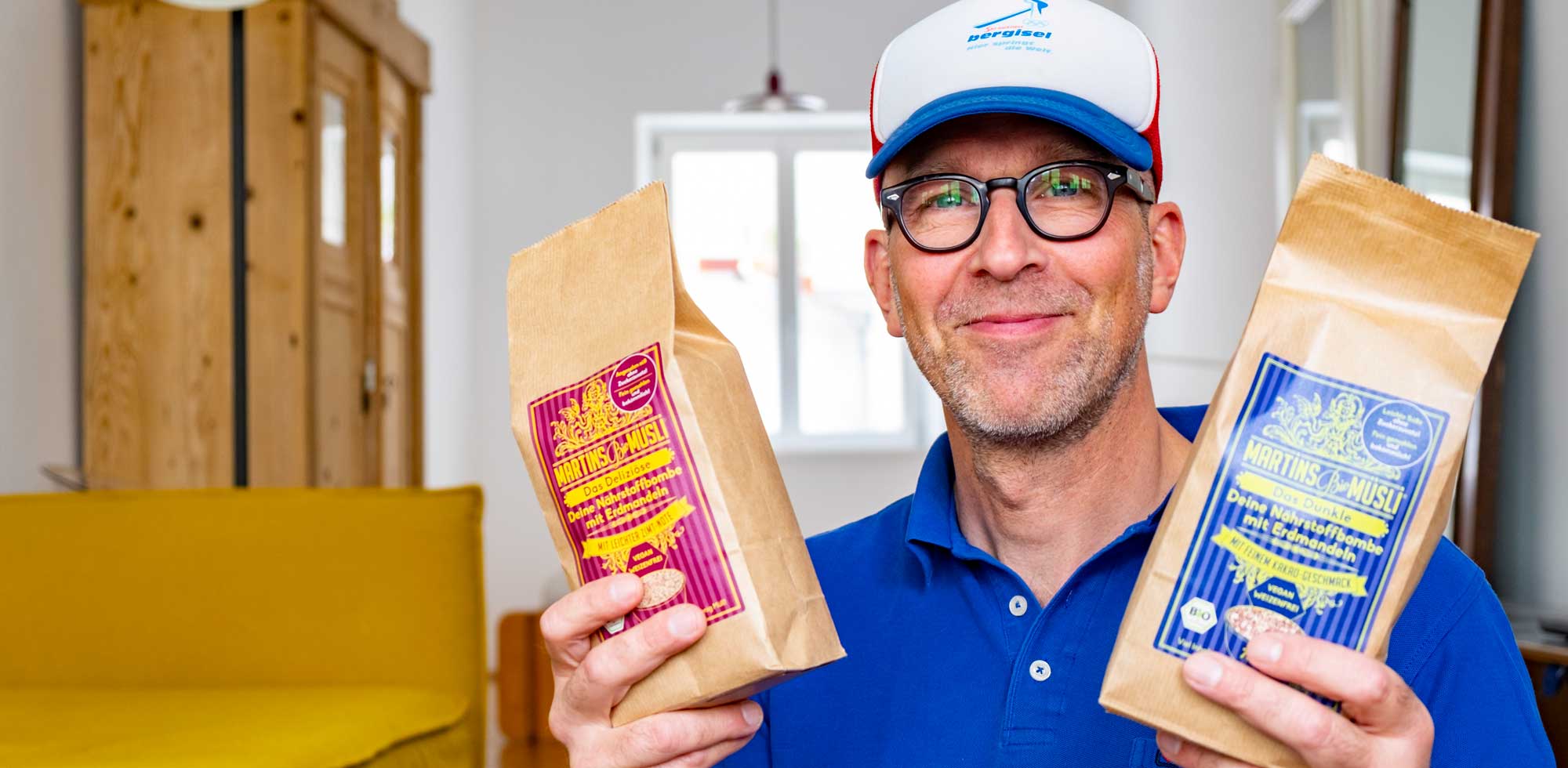 "Ich habe gerade wieder das Deliziöse bestellt und probiere jetzt auch mal die dunkle Variante mit Kakao aus. Ich bin von Martins Müsli sehr überzeugt, da es keinen Weizen und Zucker enthält. Das findet man selten... Es tut mir persönlich sehr gut und es hält den Morgen über sehr gut an. Sonst hatte ich oft schon wieder um 9.00 / 10.00 Uhr Hunger."